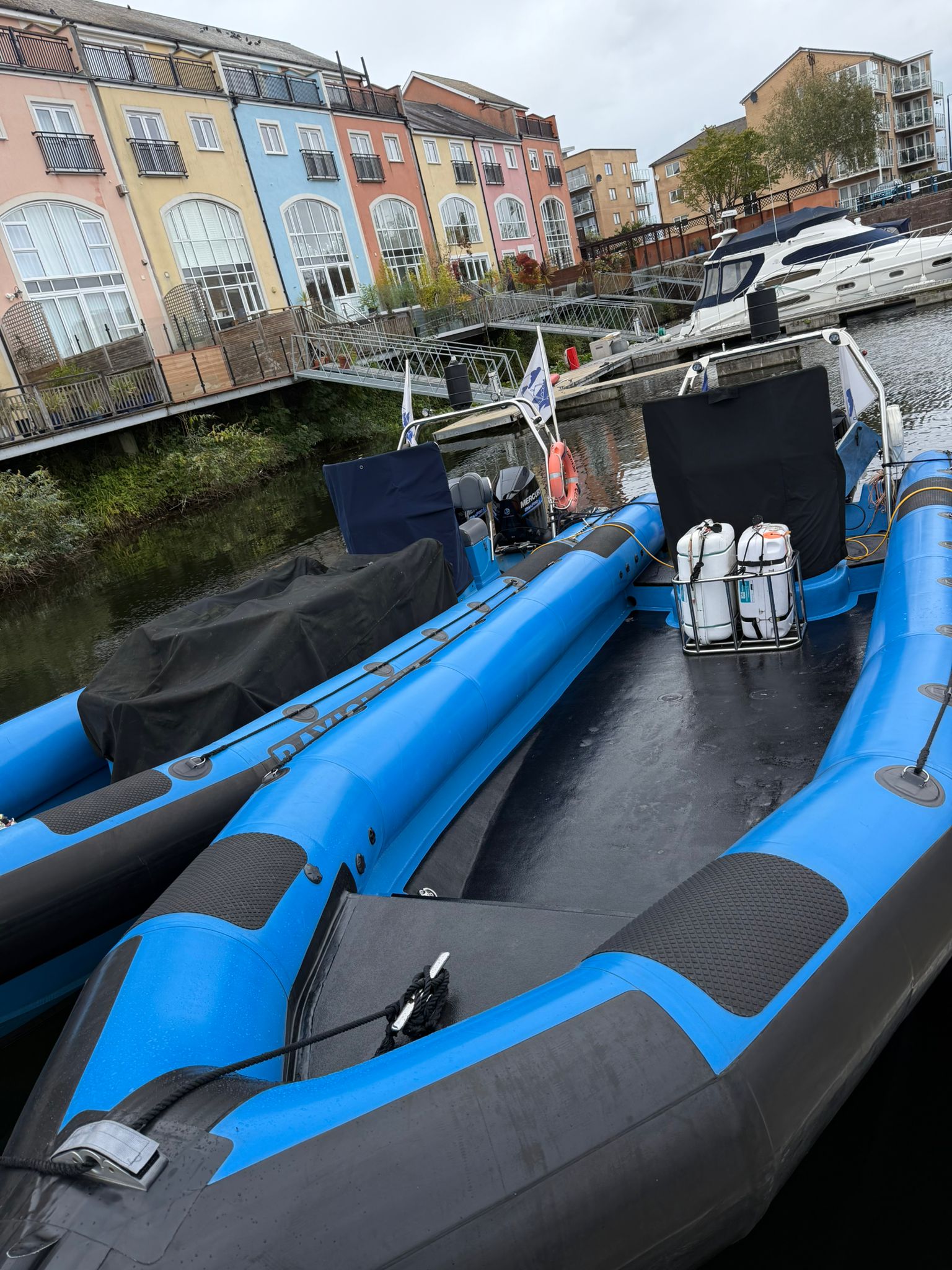 We have three 9metre RIBS (Rigid Inflatable Boat) all of which are built by ‘Ribcraft’.